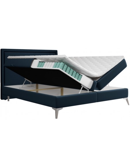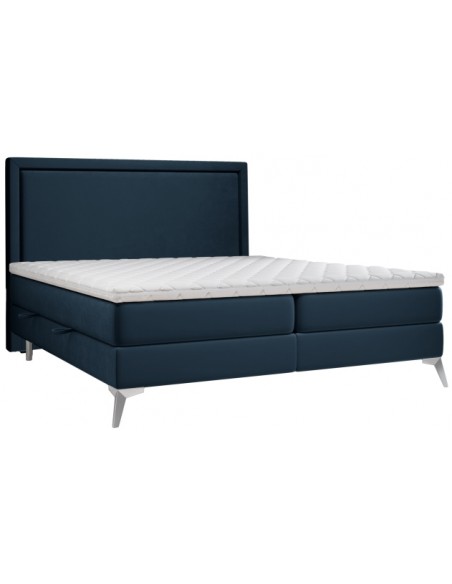 Joy kontinentalseng med opbevaring og sengegavl 140 x 200 cm med 7 komfortzoner - Krom/Blå