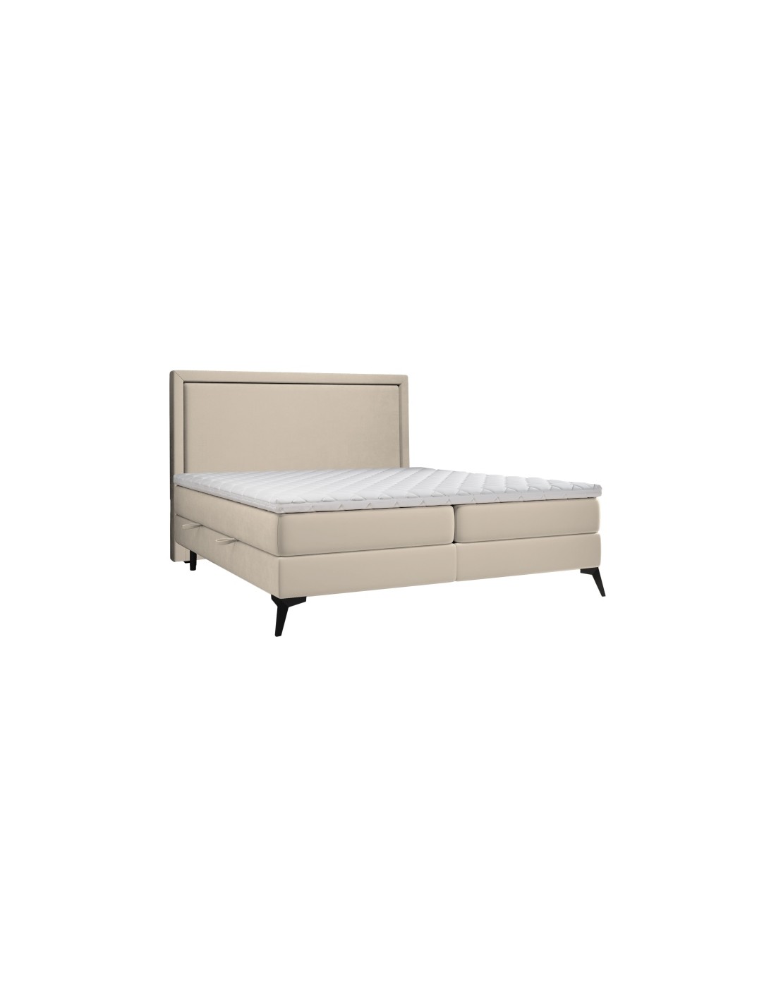 Kontinentalseng med opbevaring og sengegavl, fremstillet i guldbeige velour. Sengen måler 140 x 200 / 211 cm i bredde og dybde og 55 / 118 cm i højden. Madrasserne er med 7 komfortzoner for optimal komfort.