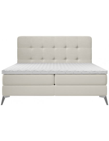 Sutton kontinentalseng med opbevaring og sengegavl 140 x 200 cm med 7 komfortzoner - Krom/Lys beige