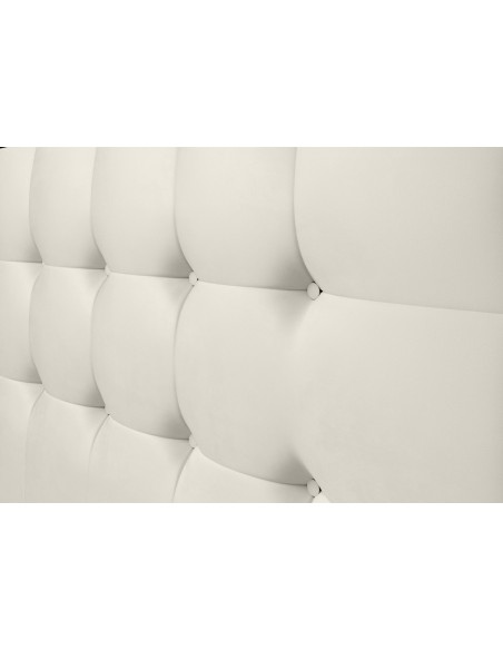 Kontinentalseng med opbevaring og sengegavl, fremstillet i lys beige velour. Sengen måler 140 x 200 / 211 cm i bredde og dybde og 55 / 118 cm i højden. Madrasserne er med 7 komfortzoner for optimal komfort.