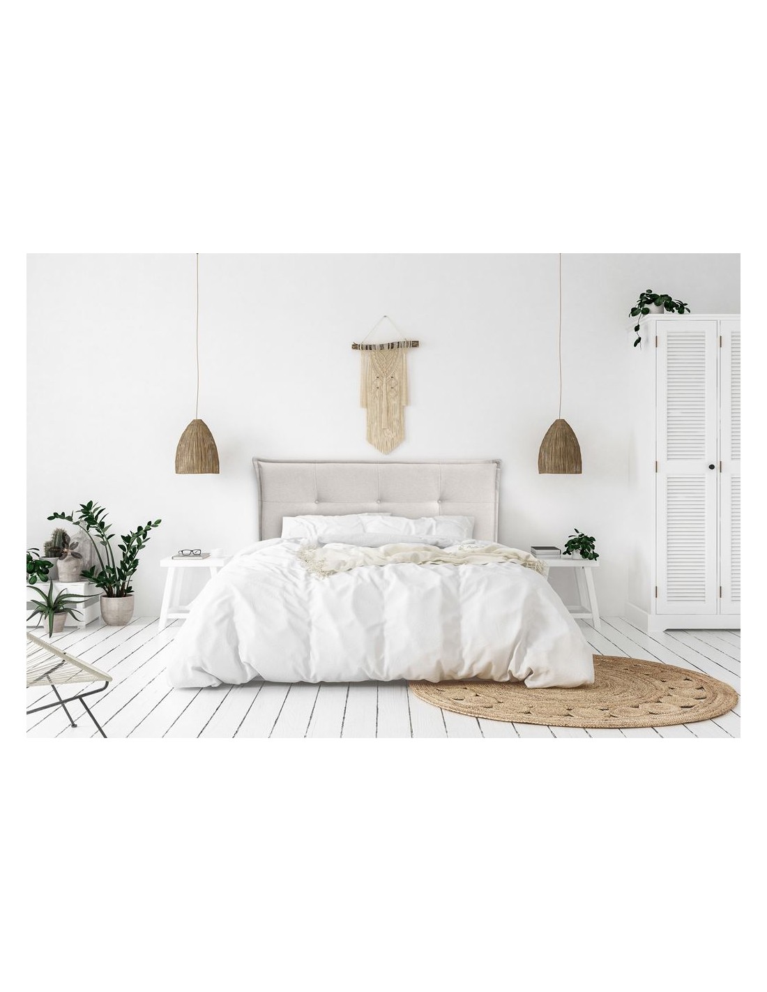 Kontinentalseng med opbevaring og sengegavl, fremstillet i beige polyester. Sengen måler 140 x 200 / 211 cm i bredde og dybde og 55 / 118 cm i højden. Madrasserne er med 7 komfortzoner for optimal komfort.