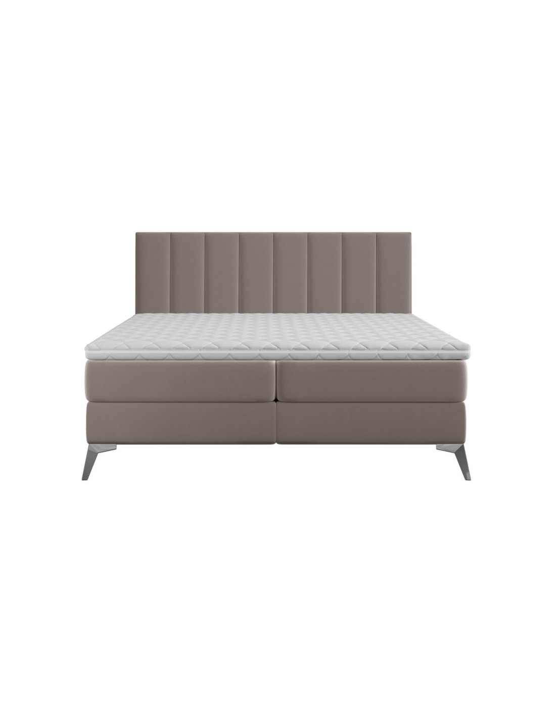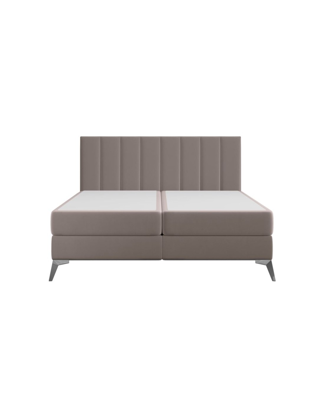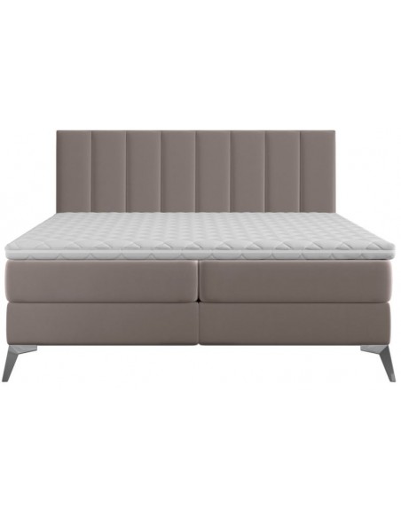 Kontinentalseng med opbevaring og sengegavl, fremstillet i mørk beige velour. Sengen måler 140 x 200 / 211 cm i bredde og dybde og 55 / 118 cm i højden. Madrasserne er med 7 komfortzoner for optimal komfort.