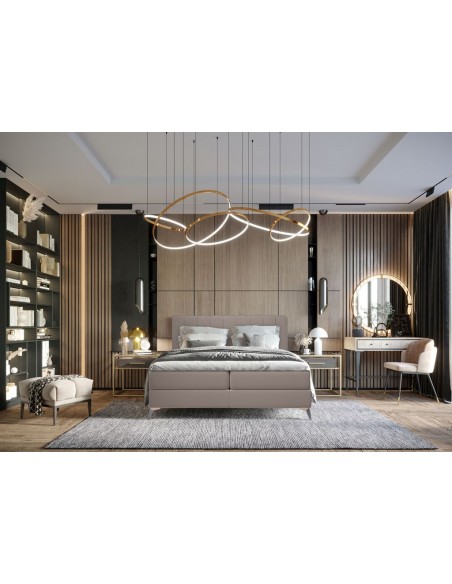 Aggaz kontinentalseng med opbevaring og sengegavl 140 x 200 cm med 7 komfortzoner - Krom/Mørk beige