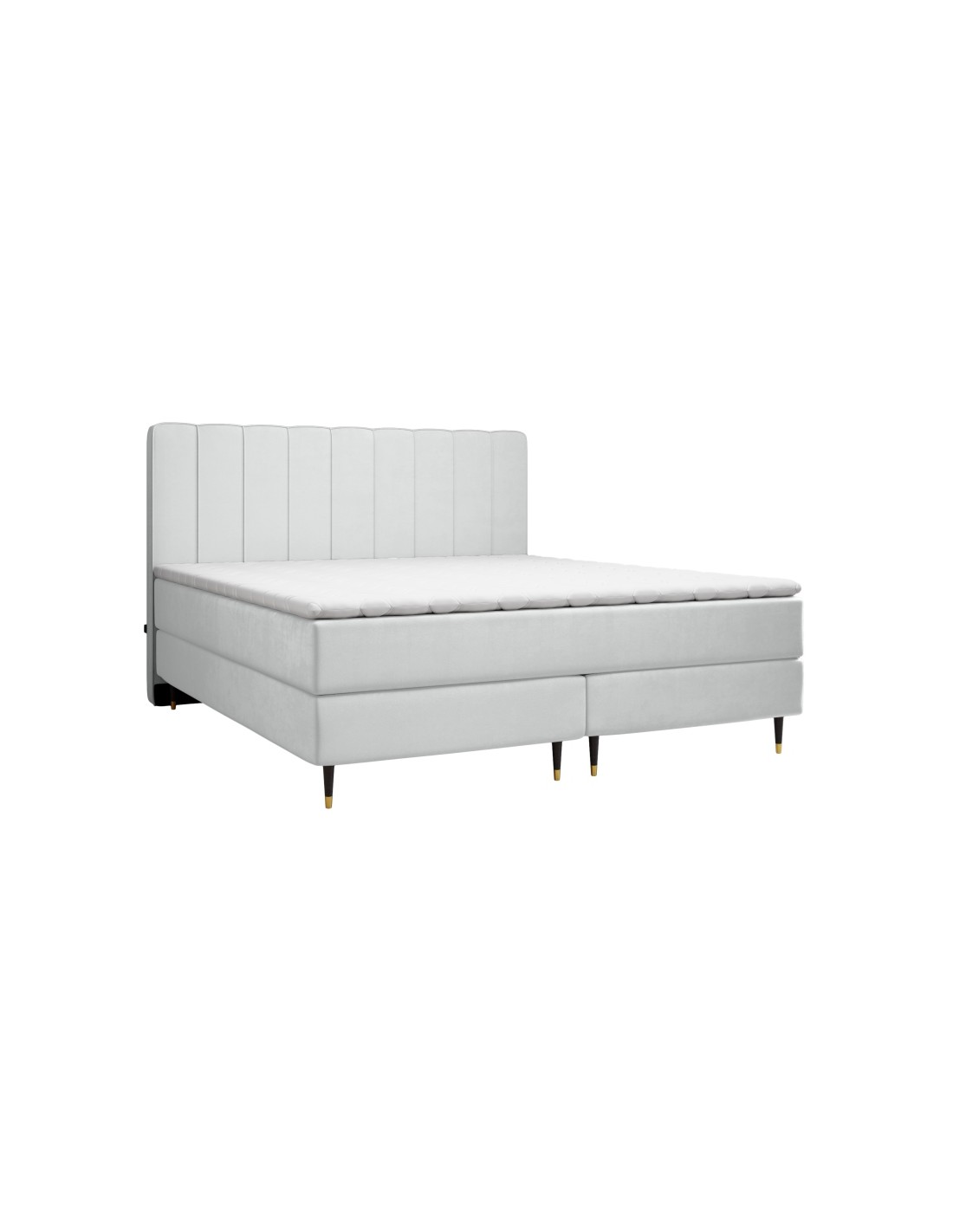 Kontinentalseng med sengegavl, fremstillet i lysegrå velour. Sengen måler 140 x 200 / 211 cm i bredde og dybde og 55 / 120 cm i højden. Madrasserne er med 7 komfortzoner for optimal komfort.