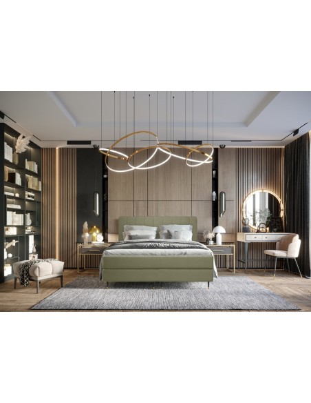 Kobbe kontinentalseng med sengegavl 140 x 200 cm med 7 komfortzoner - Sort/Guld/Skovgrøn