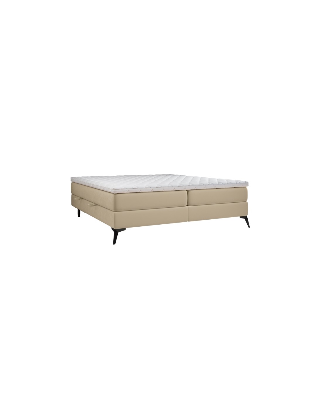 Kontinentalseng med opbevaring, fremstillet i guldbeige velour. Sengen måler 140 x 200 cm i bredde og dybde og 55 cm i højden. Madrasserne er med 7 komfortzoner for optimal komfort.