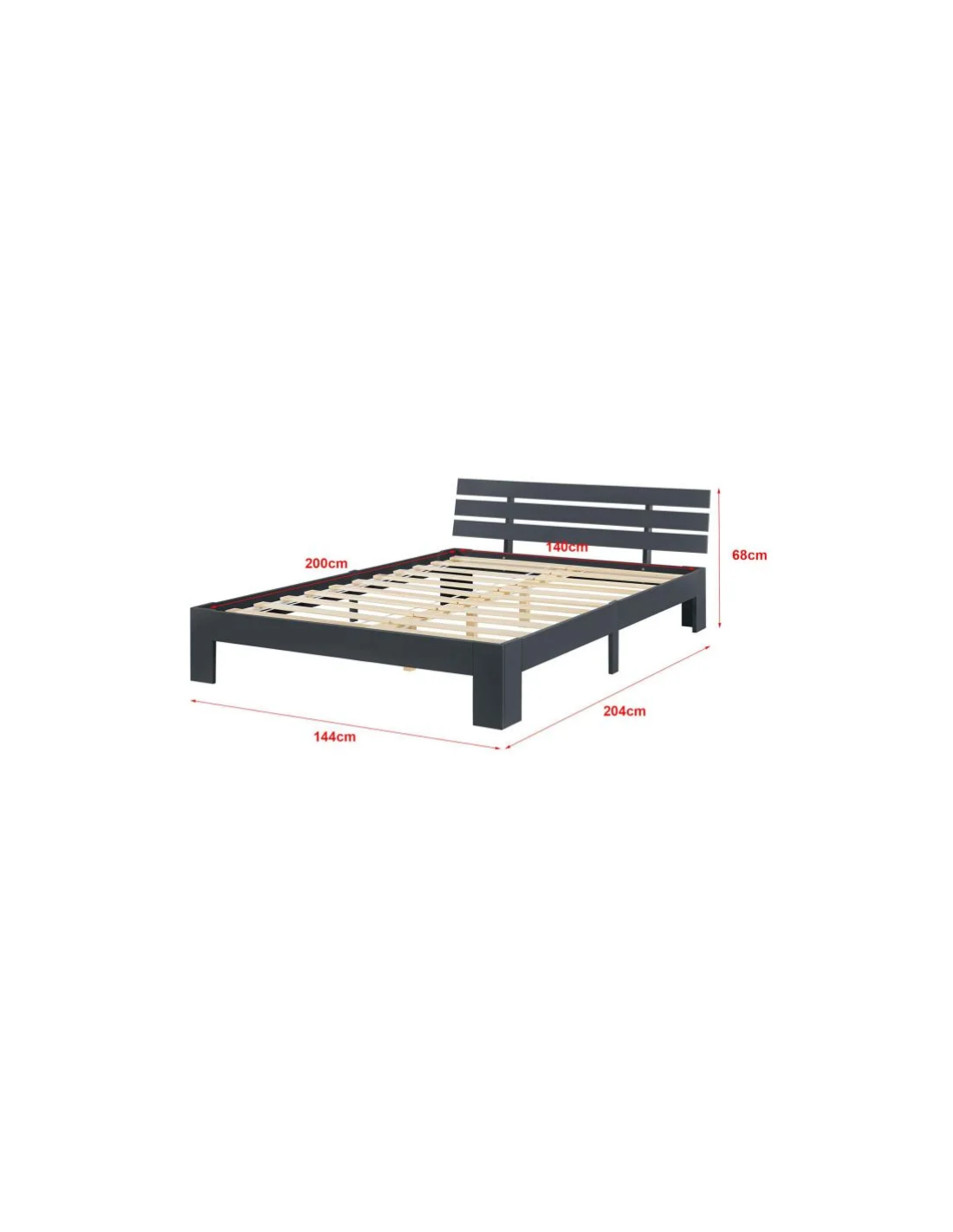 Sengeramme med gavl, udført i et design af fyrretræ. Sengen måler 30 - 68 cm i højden og 204 x 144 cm i bredde og dybde og passer til madrasser med målene 200 x 140 cm. Lamelbund medfølger (max. belastning: 150 kg).