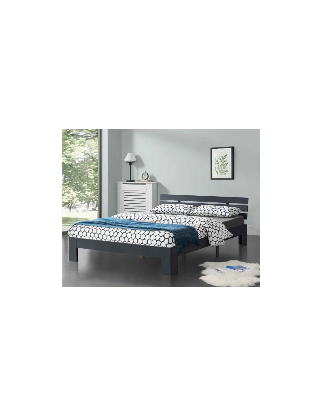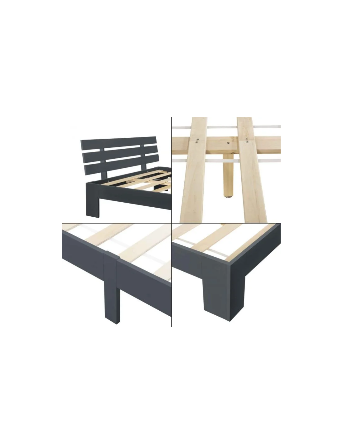 Sengeramme med gavl i fyrretræ 204 x 144 cm - Grå