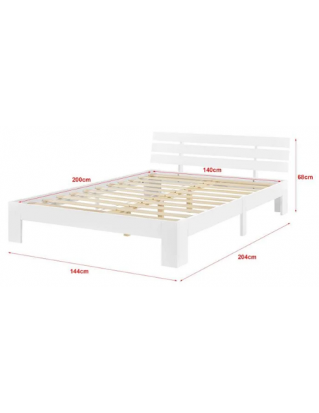 Sengeramme med gavl, udført i et design af fyrretræ. Sengen måler 30 - 68 cm i højden og 204 x 144 cm i bredde og dybde og passer til madrasser med målene 200 x 140 cm. Lamelbund medfølger (max. belastning: 150 kg).
