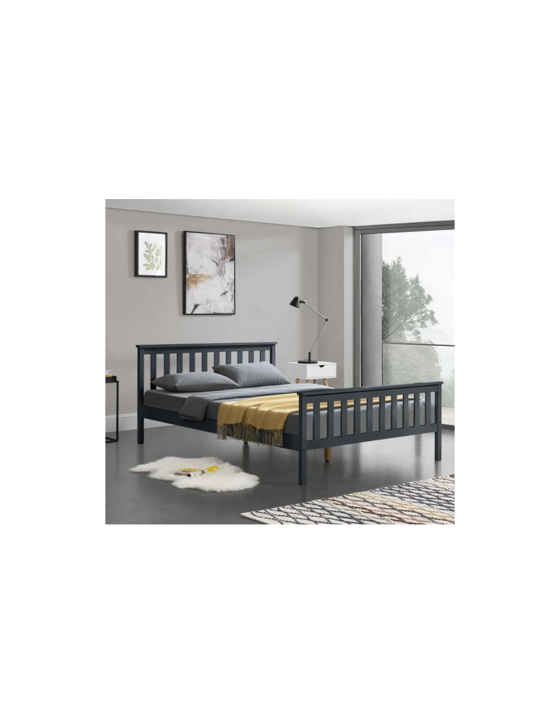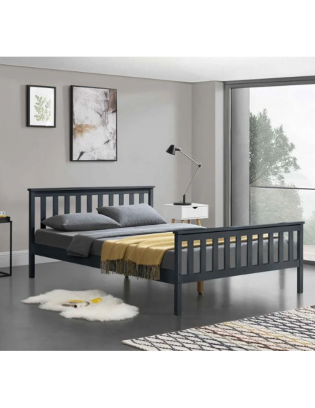 Sengeramme med gavl i fyrretræ 208 x 148 cm - Grå