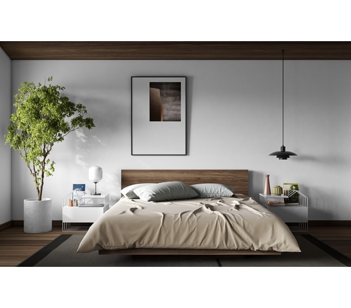 TemaHome Float sengeramme med gavl, udført i et design af valnøddefarvet finér. Sengerammen passer til madrasser med målene 160 x 200 cm. Sengerammen med gavl måler 208 x 180 cm i dybde og bredde. Lamelbund medfølger.