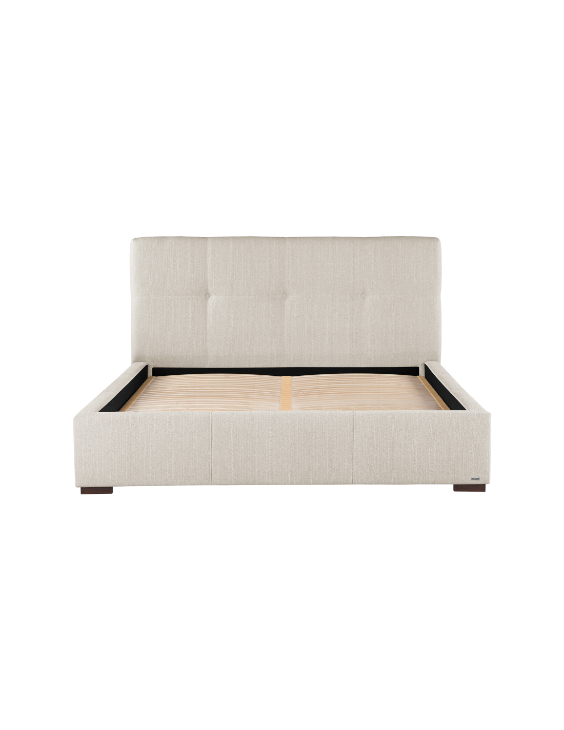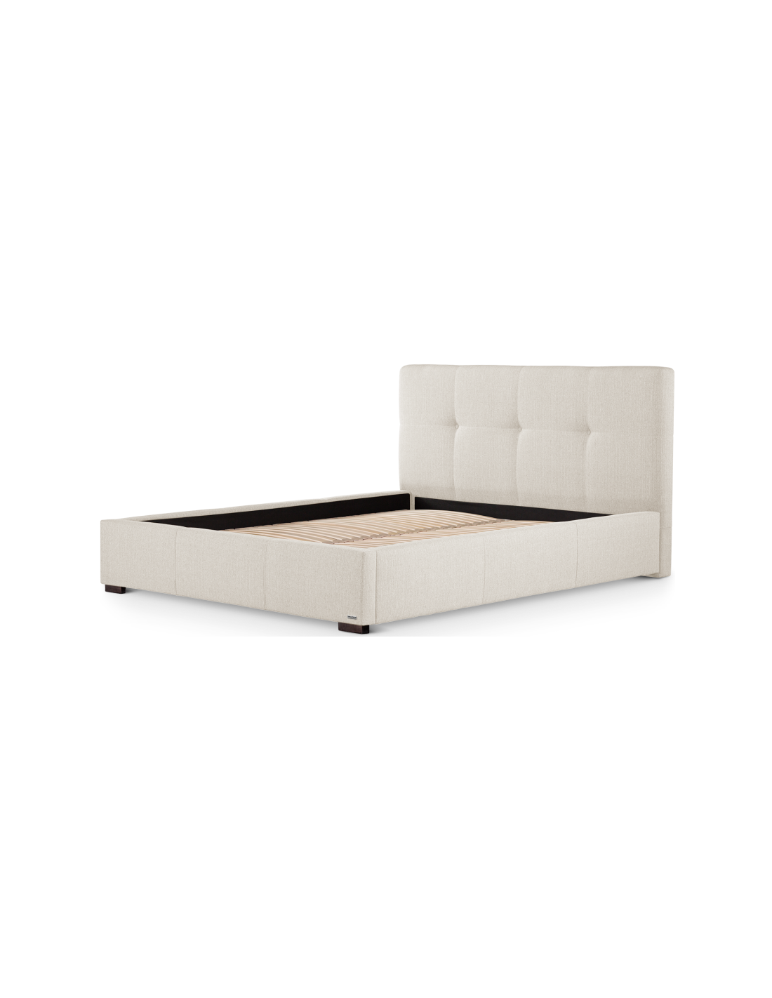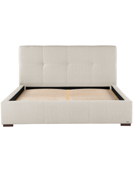 Sengeramme med sengegavl, fremstillet i creme polyester. Sengen måler 178 x 223 cm i bredde og dybde og 34 / 106 cm i højden. Til sengen passer en madras med målene 160 x 200 cm, eller 2 stk. 80 x 200 cm. Denne model har fast lamelbund.