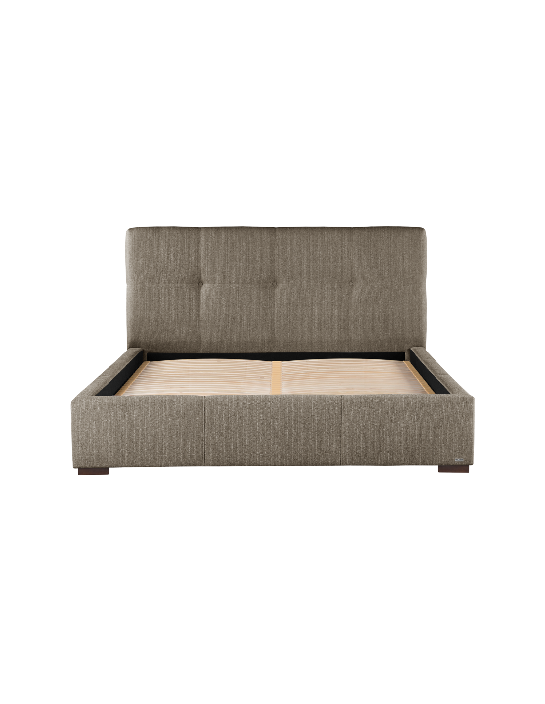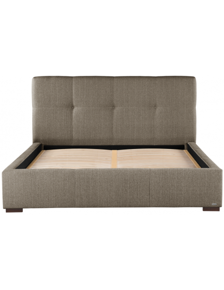 Sengeramme med sengegavl, fremstillet i brun polyester. Sengen måler 178 x 223 cm i bredde og dybde og 34 / 106 cm i højden. Til sengen passer en madras med målene 160 x 200 cm, eller 2 stk. 80 x 200 cm. Denne model har fast lamelbund.