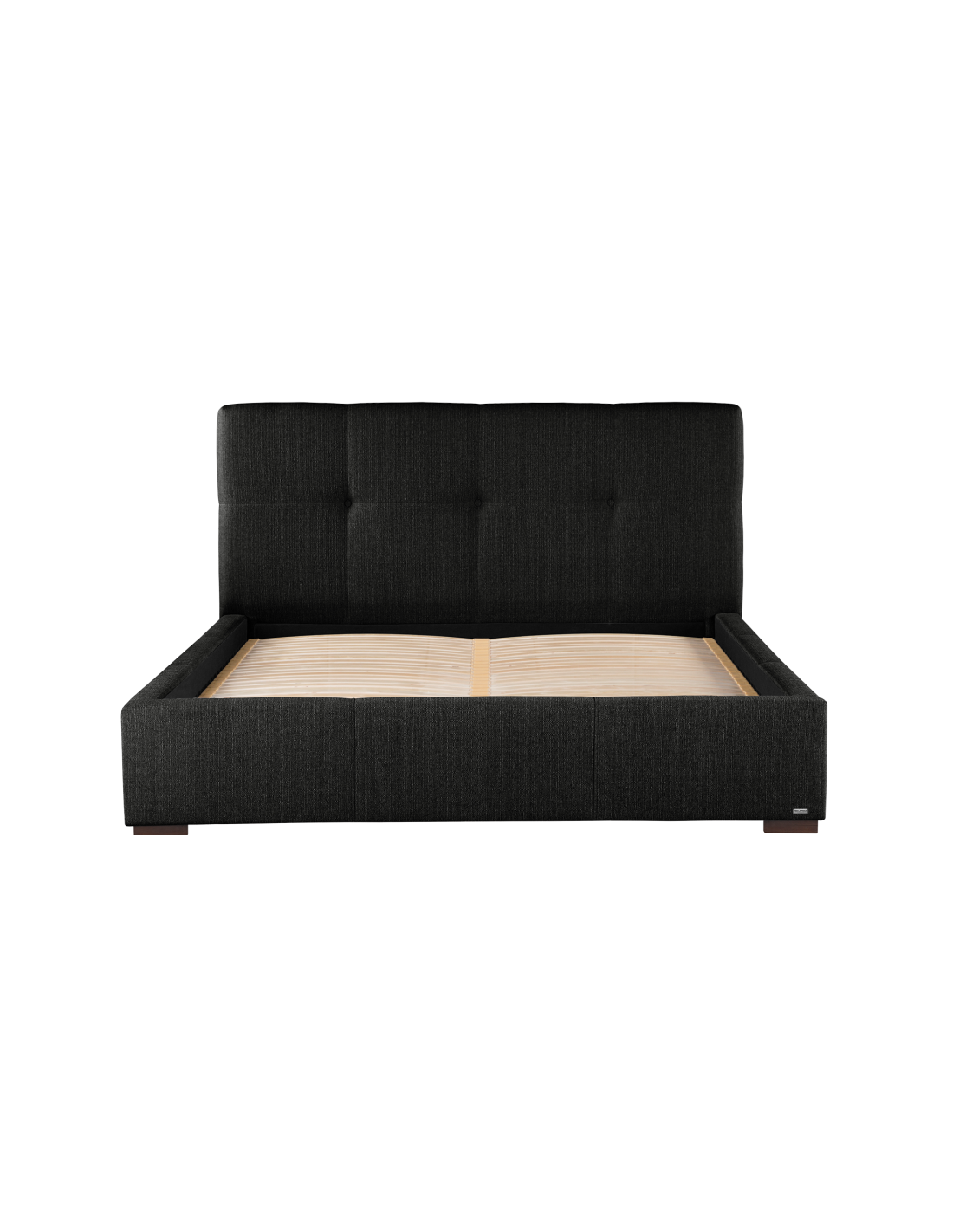 Sengeramme med sengegavl, fremstillet i sort polyester. Sengen måler 178 x 223 cm i bredde og dybde og 34 / 106 cm i højden. Til sengen passer en madras med målene 160 x 200 cm, eller 2 stk. 80 x 200 cm. Denne model har fast lamelbund.