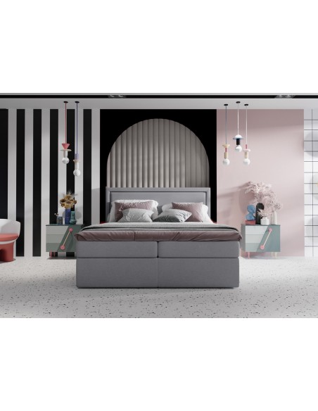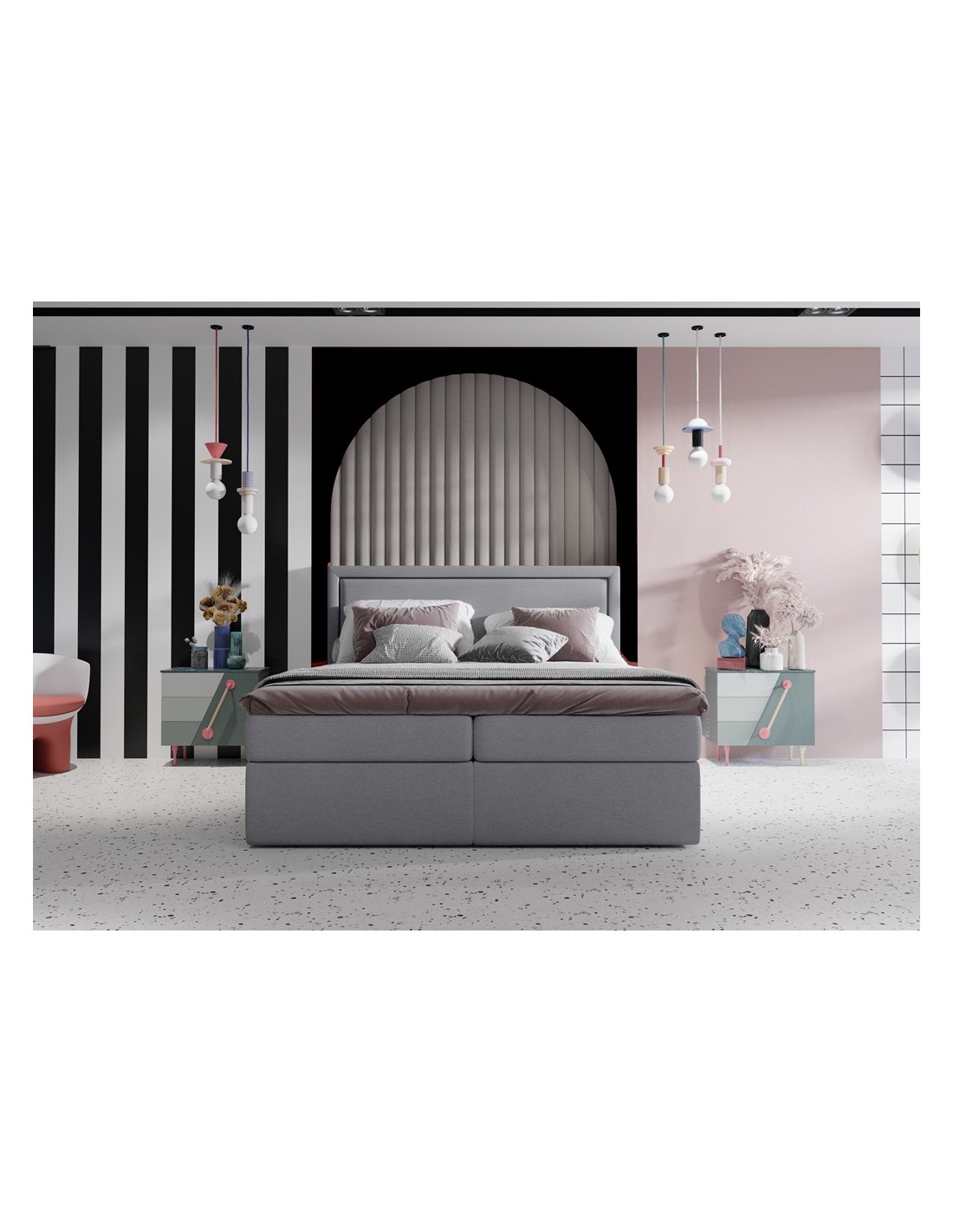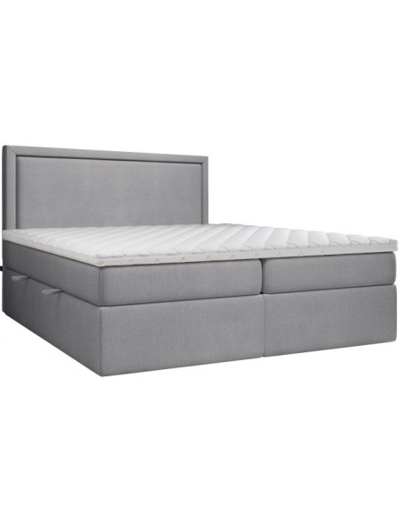 Kontinentalseng med opbevaring og sengegavl, fremstillet i mørkegrå polyester. Sengen måler 160 x 200 / 211 cm i bredde og dybde og 64 / 118 cm i højden. Madrasserne er med 7 komfortzoner for optimal komfort.