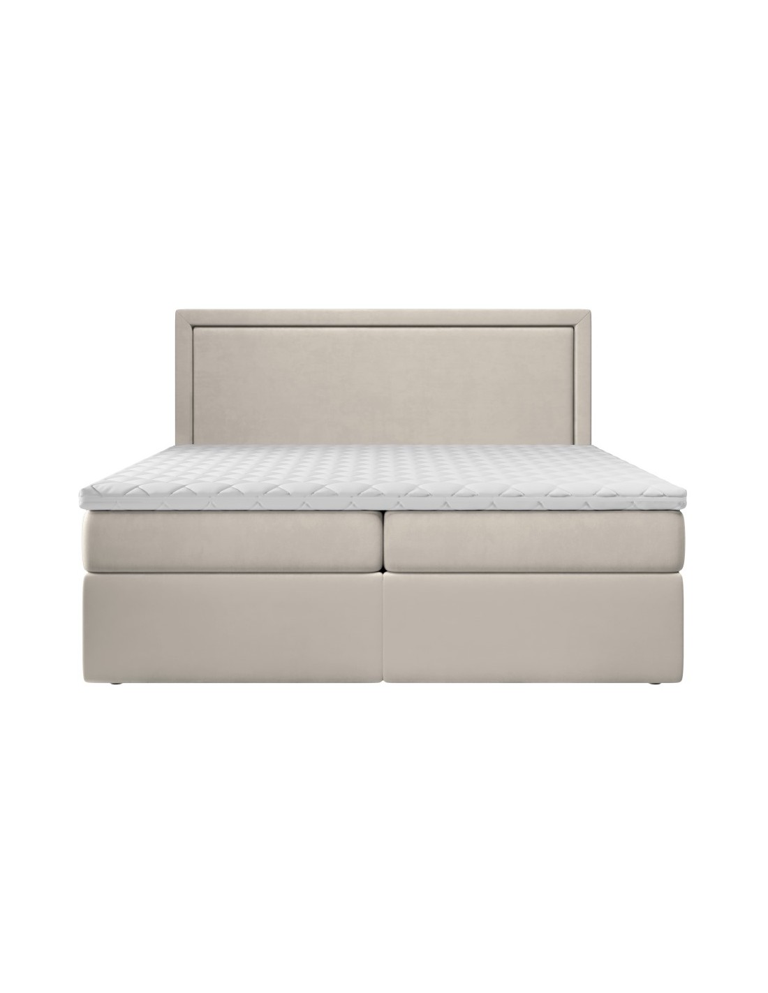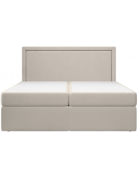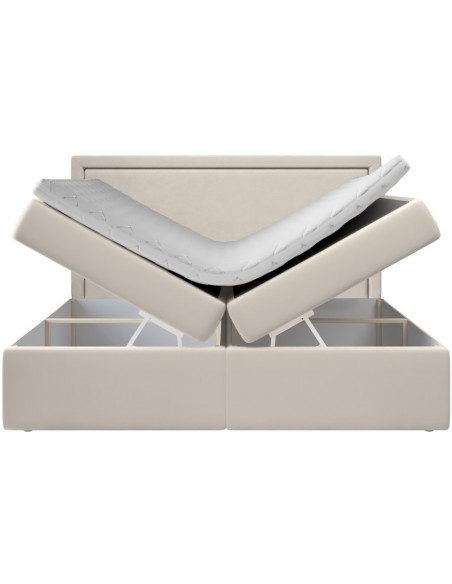 Kontinentalseng med opbevaring og sengegavl, fremstillet i lys beige velour. Sengen måler 160 x 200 / 211 cm i bredde og dybde og 64 / 118 cm i højden. Madrasserne er med 7 komfortzoner for optimal komfort.