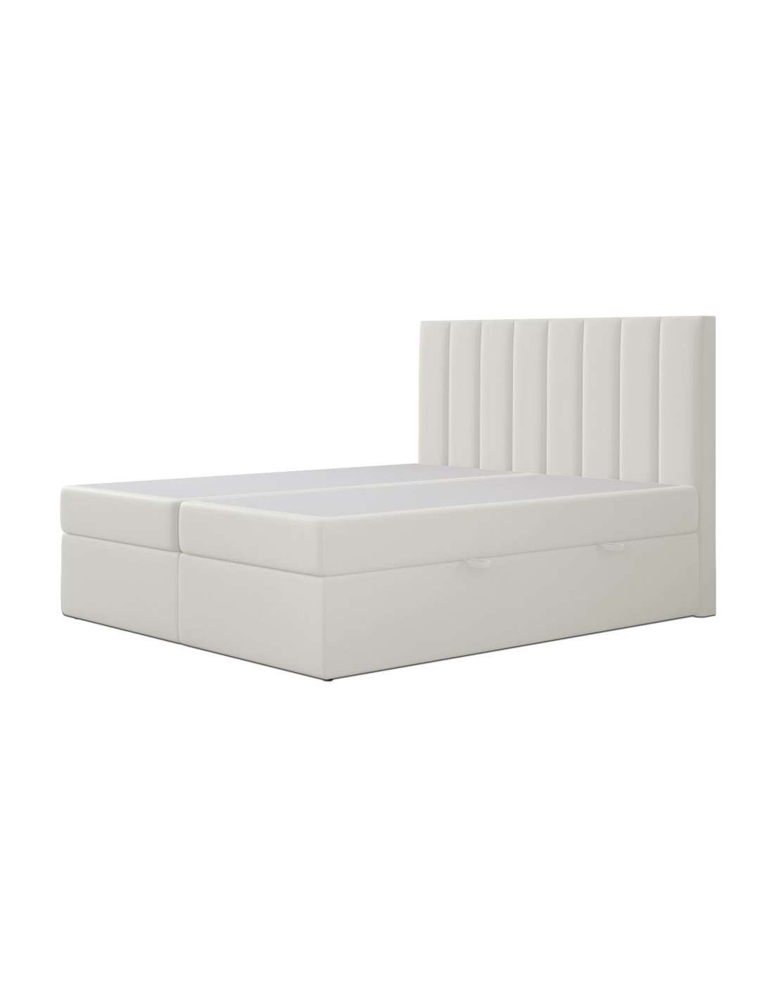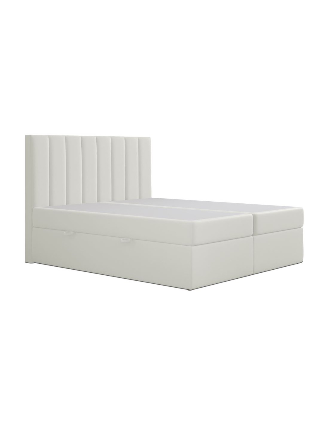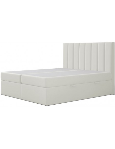 Kontinentalseng med opbevaring og sengegavl, fremstillet i cremehvid velour. Sengen måler 160 x 200 / 211 cm i bredde og dybde og 64 / 118 cm i højden. Madrasserne er med 7 komfortzoner for optimal komfort.