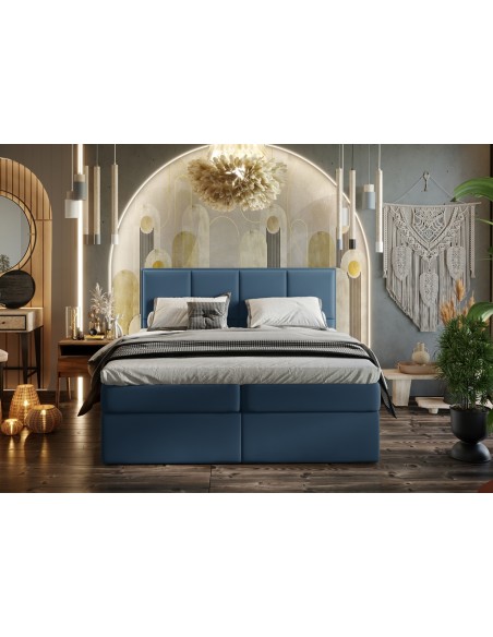 Somerdale kontinentalseng med opbevaring og sengegavl 160 x 200 cm med 7 komfortzoner - Blå