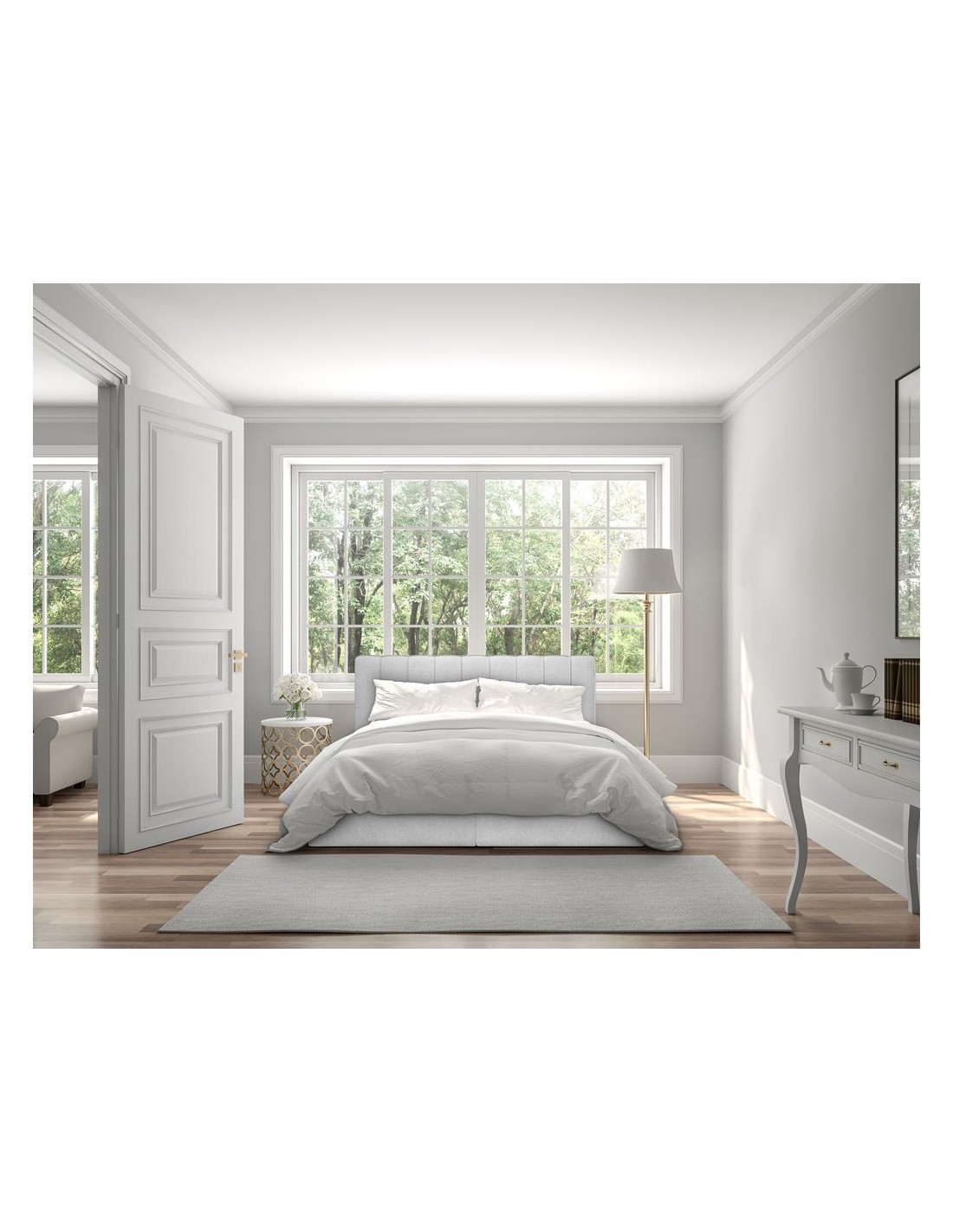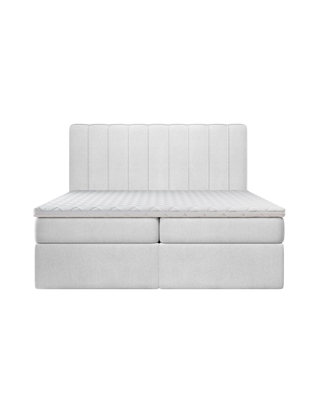 Kontinentalseng med opbevaring og sengegavl, fremstillet i lysegrå polyester. Sengen måler 160 x 200 / 211 cm i bredde og dybde og 64 / 118 cm i højden. Madrasserne er med 7 komfortzoner for optimal komfort.