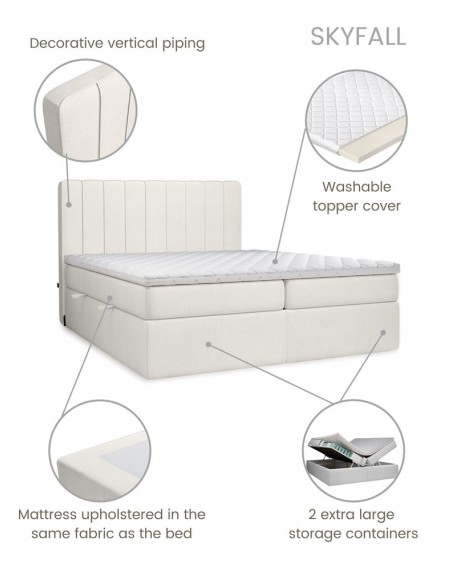 Skyfall kontinentalseng med opbevaring og sengegavl 160 x 200 cm med 7 komfortzoner - Lysegrå