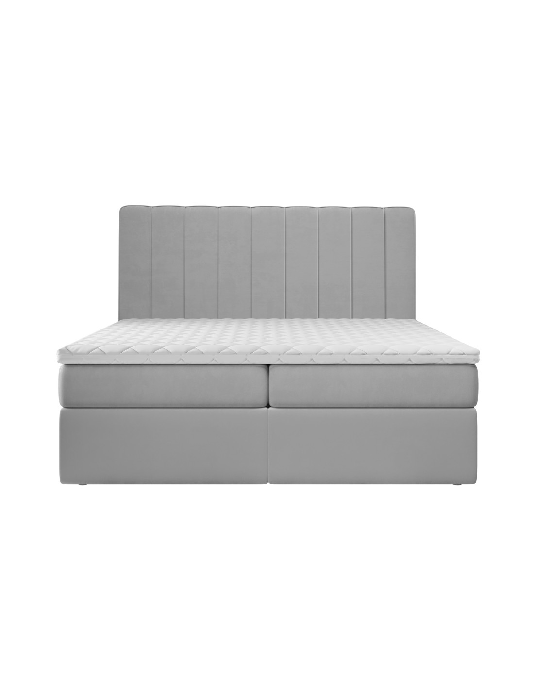 Kontinentalseng med opbevaring og sengegavl, fremstillet i lysegrå velour. Sengen måler 160 x 200 / 211 cm i bredde og dybde og 64 / 118 cm i højden. Madrasserne er med 7 komfortzoner for optimal komfort.
