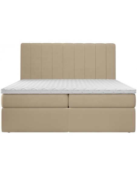 Kontinentalseng med opbevaring og sengegavl, fremstillet i guldbeige velour. Sengen måler 160 x 200 / 211 cm i bredde og dybde og 64 / 118 cm i højden. Madrasserne er med 7 komfortzoner for optimal komfort.