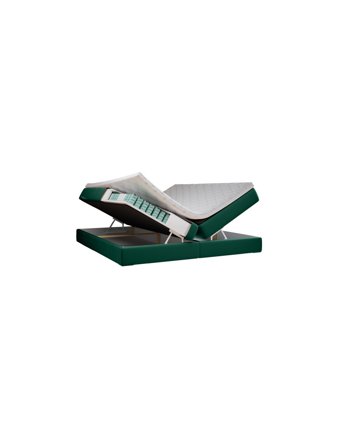 Cube kontinentalseng med opbevaring og sengegavl 160 x 200 cm med 7 komfortzoner - Krom/Flaskegrøn