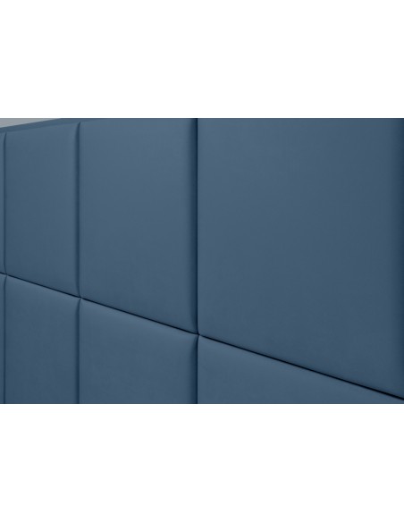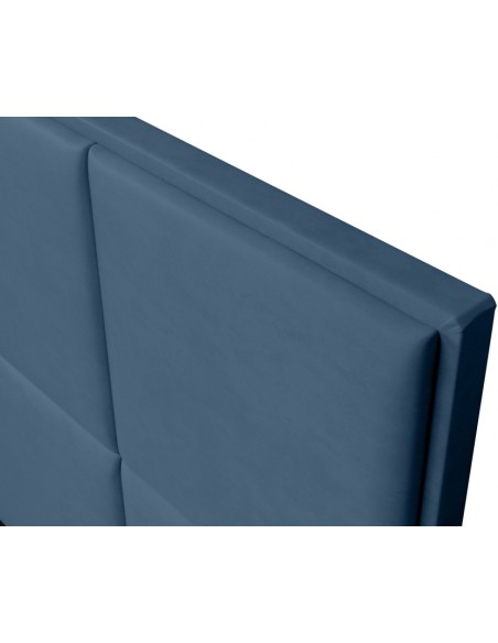 Kontinentalseng med opbevaring og sengegavl, fremstillet i blå velour. Sengen måler 160 x 200 / 211 cm i bredde og dybde og 55 / 123 cm i højden. Madrasserne er med 7 komfortzoner for optimal komfort.