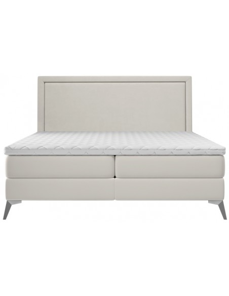 Joy kontinentalseng med opbevaring og sengegavl 160 x 200 cm med 7 komfortzoner - Krom/Lys beige