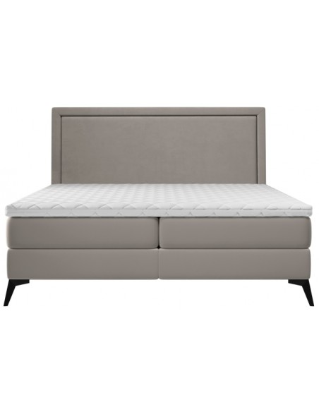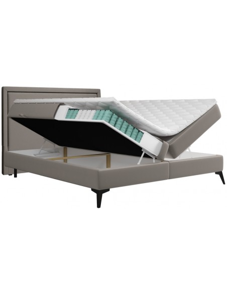 Kontinentalseng med opbevaring og sengegavl, fremstillet i mørk beige velour. Sengen måler 160 x 200 / 211 cm i bredde og dybde og 55 / 118 cm i højden. Madrasserne er med 7 komfortzoner for optimal komfort.