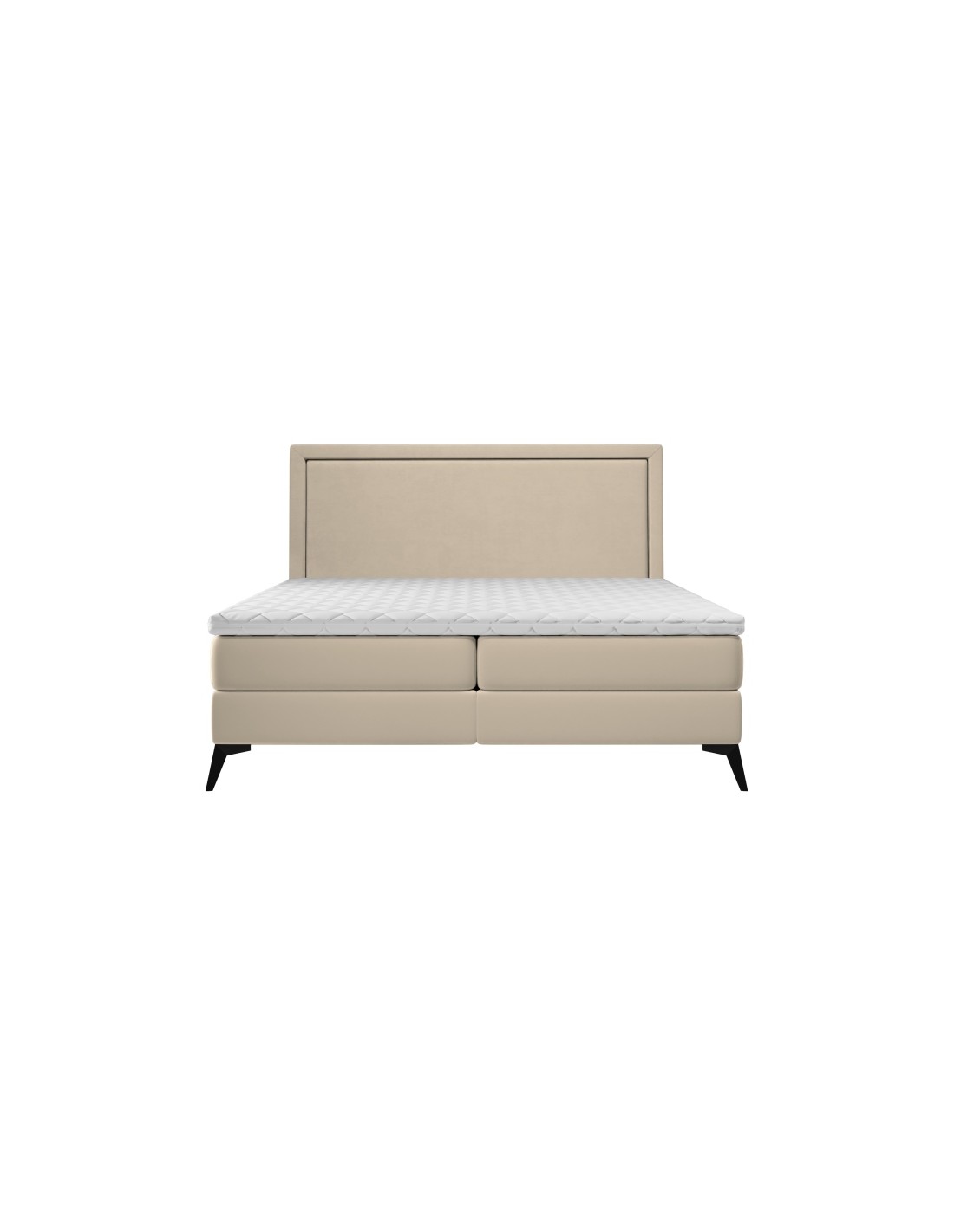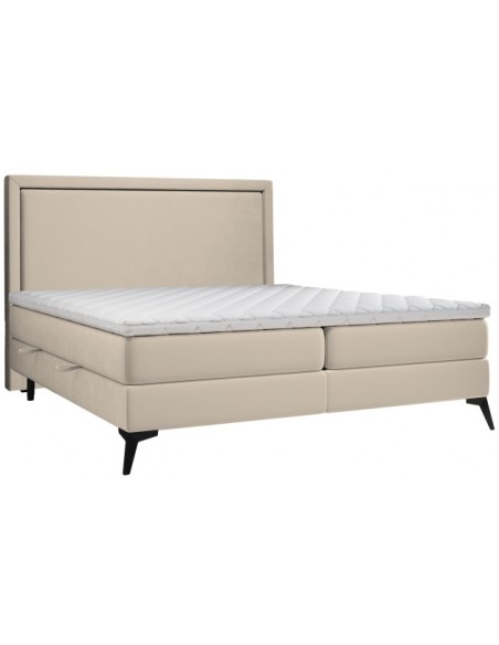 Kontinentalseng med opbevaring og sengegavl, fremstillet i guldbeige velour. Sengen måler 160 x 200 / 211 cm i bredde og dybde og 55 / 118 cm i højden. Madrasserne er med 7 komfortzoner for optimal komfort.