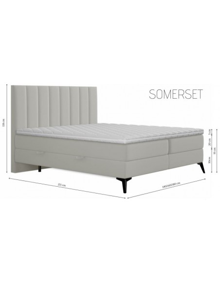 Somerset kontinentalseng med opbevaring og sengegavl 160 x 200 cm med 7 komfortzoner - Krom/Cremehvid