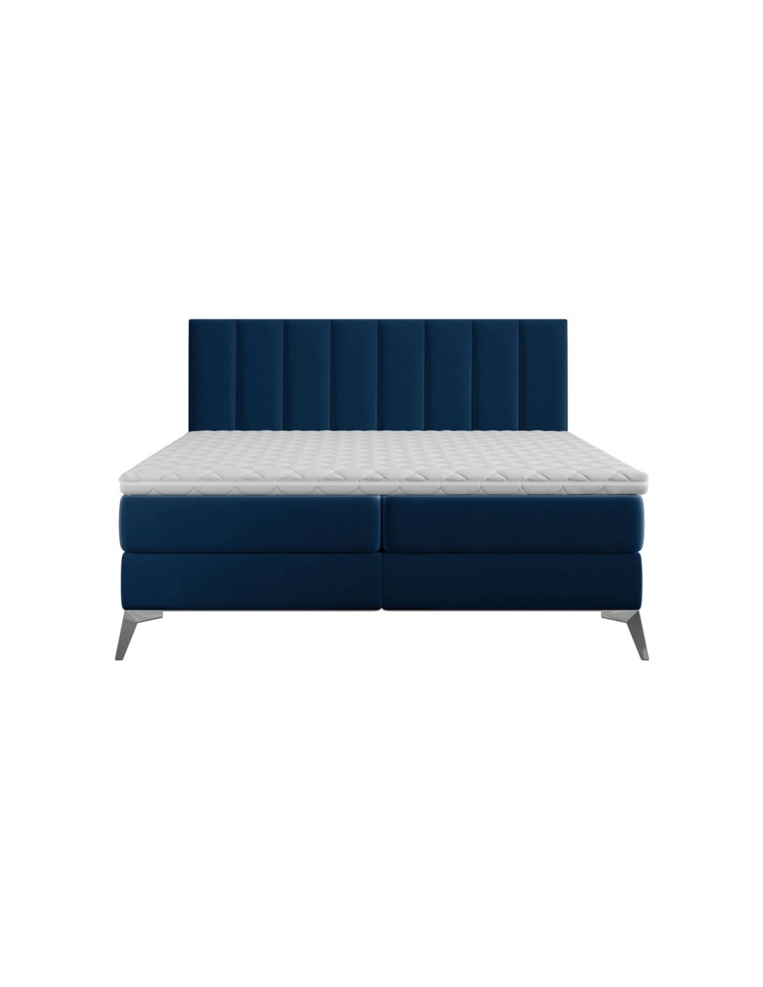 Kontinentalseng med opbevaring og sengegavl, fremstillet i dyb blå velour. Sengen måler 160 x 200 / 211 cm i bredde og dybde og 55 / 118 cm i højden. Madrasserne er med 7 komfortzoner for optimal komfort.