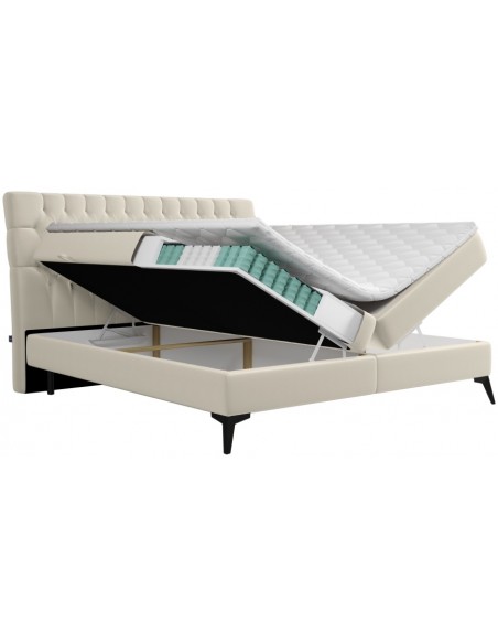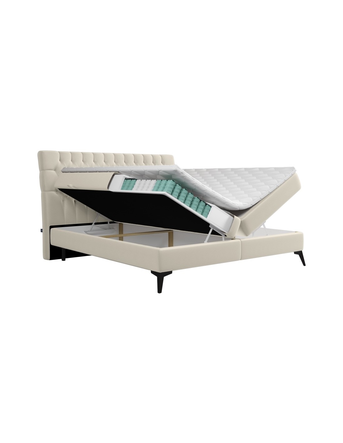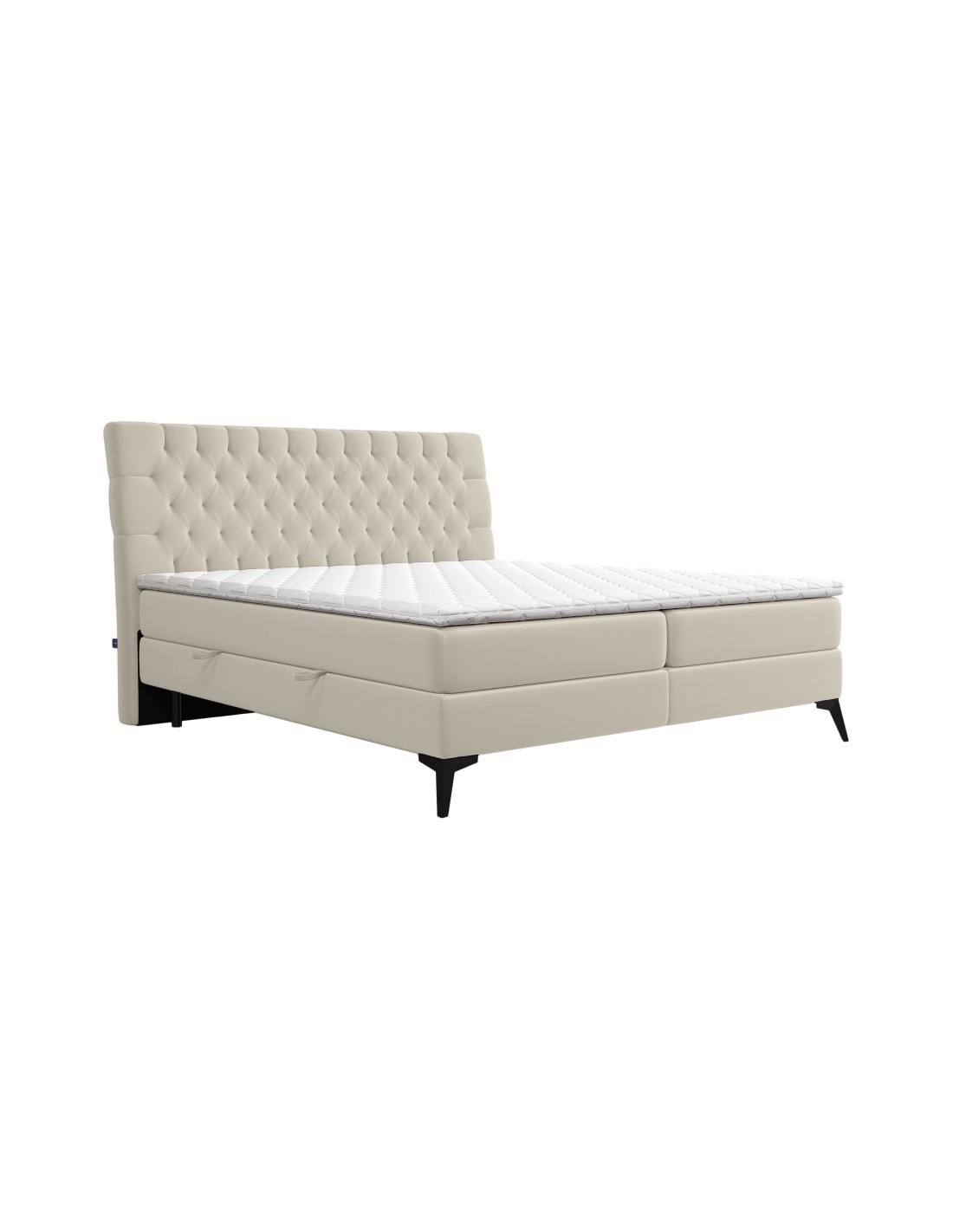 Madison kontinentalseng med opbevaring og sengegavl 160 x 200 cm med 7 komfortzoner - Sort/Lys beige