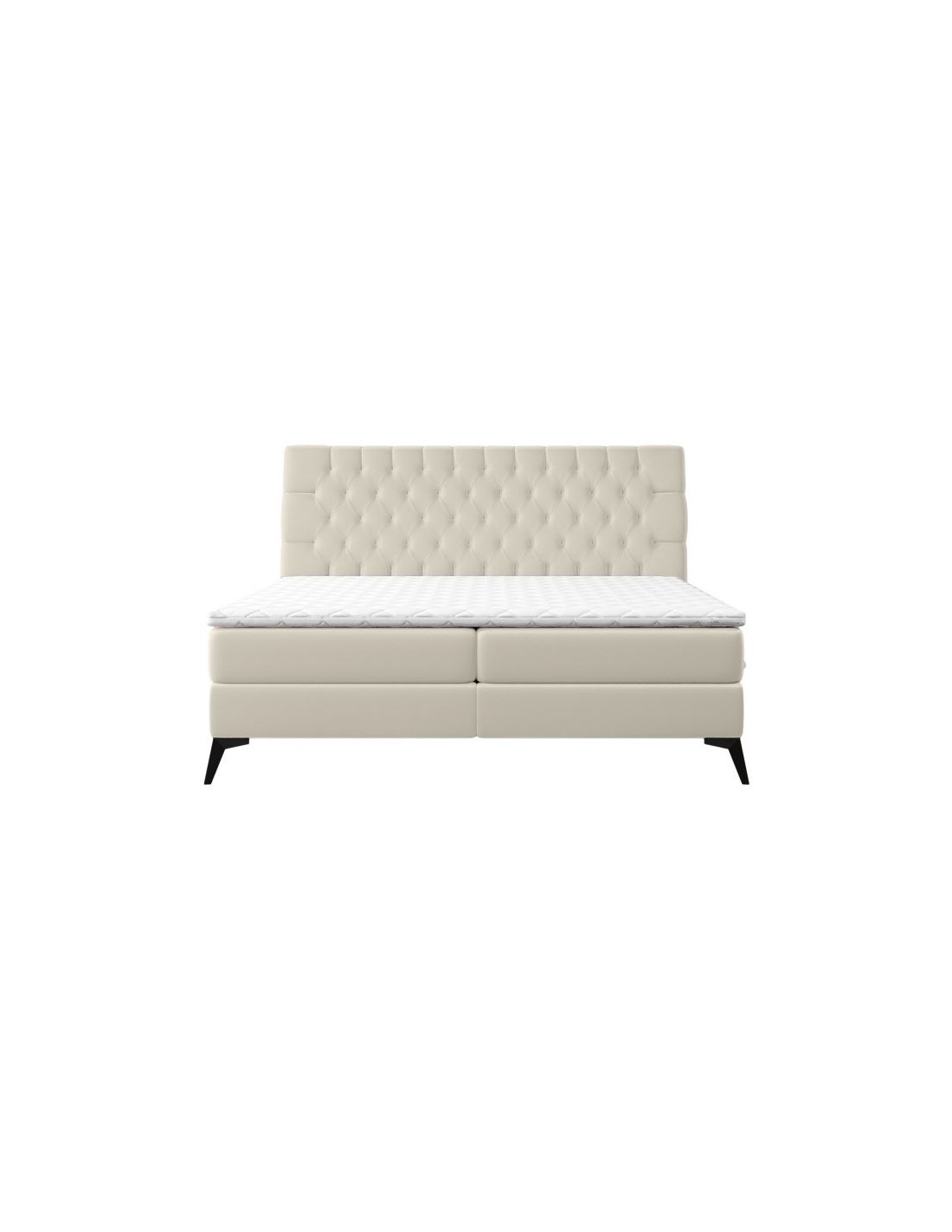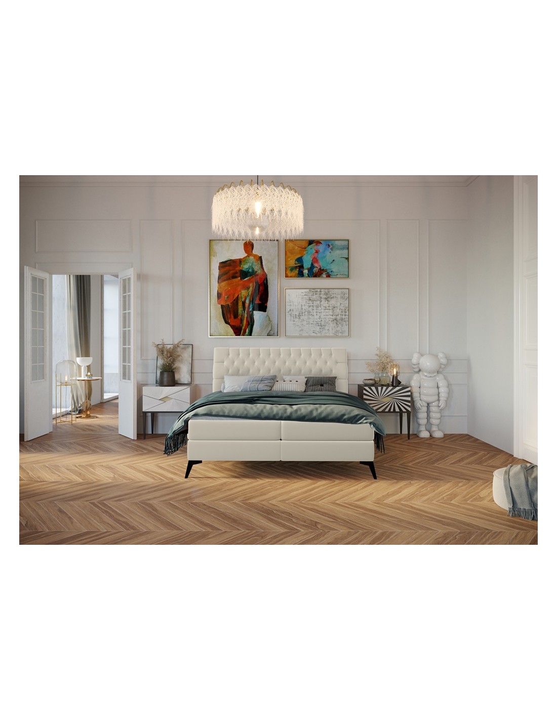 Kontinentalseng med opbevaring og sengegavl, fremstillet i lys beige velour. Sengen måler 160 x 200 / 211 cm i bredde og dybde og 55 / 118 cm i højden. Madrasserne er med 7 komfortzoner for optimal komfort.