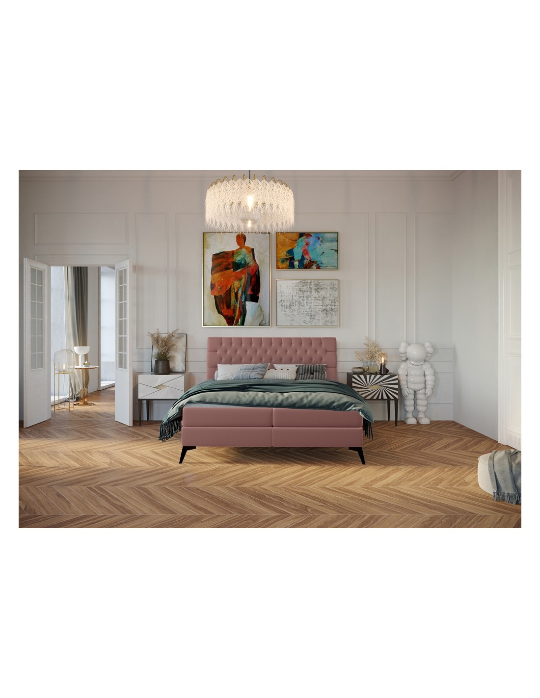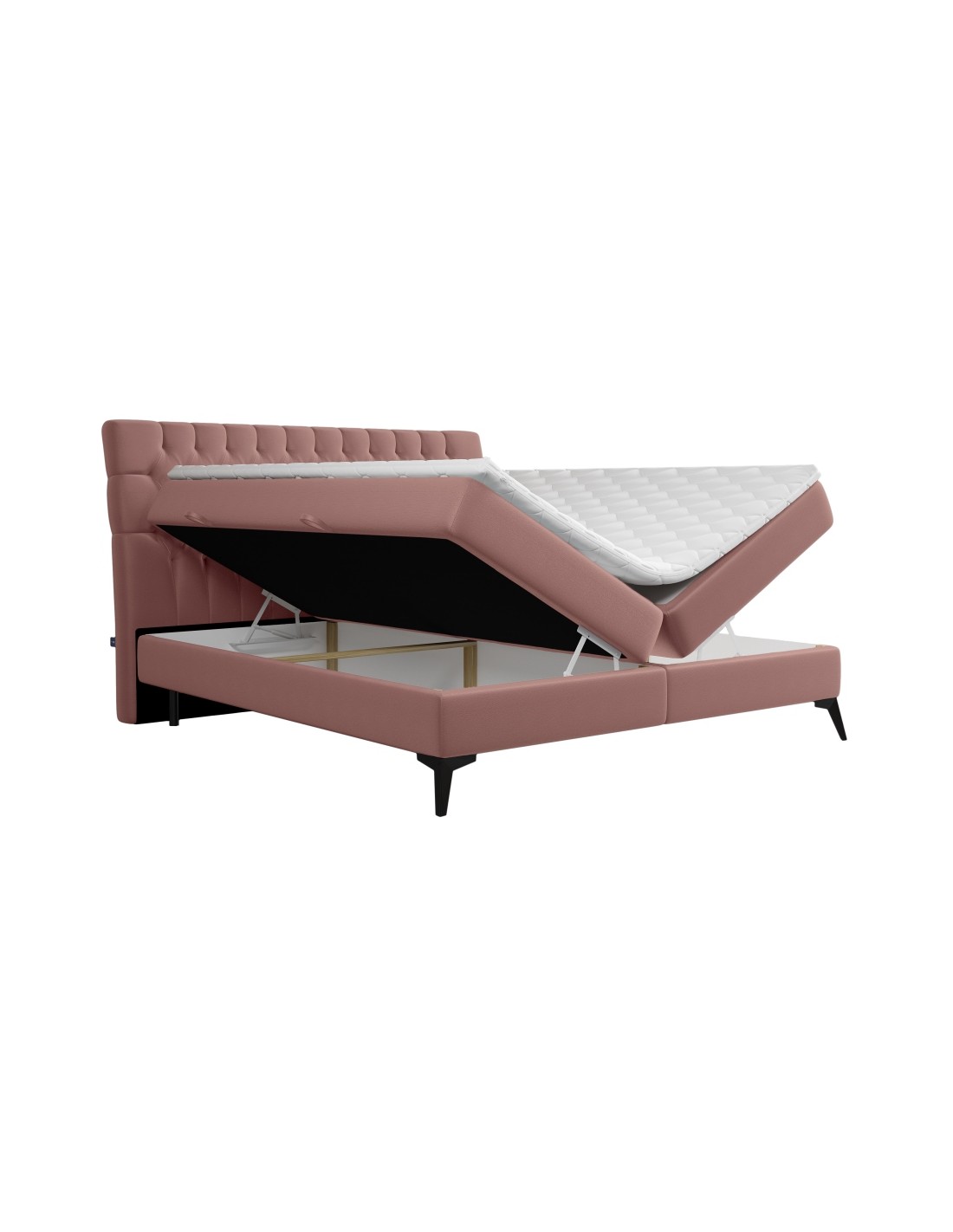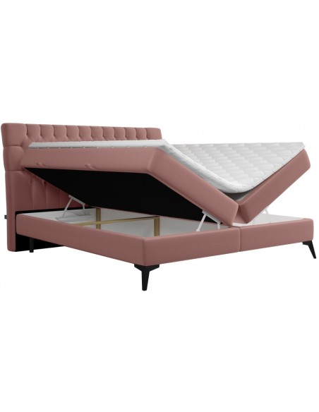 Kontinentalseng med opbevaring og sengegavl, fremstillet i pink velour. Sengen måler 160 x 200 / 211 cm i bredde og dybde og 55 / 118 cm i højden. Madrasserne er med 7 komfortzoner for optimal komfort.