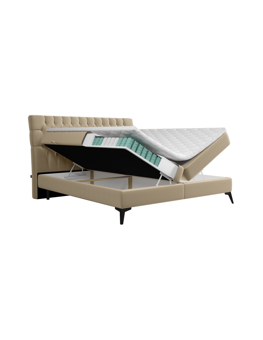Madison kontinentalseng med opbevaring og sengegavl 160 x 200 cm med 7 komfortzoner - Sort/Guldbeige
