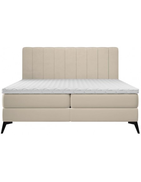 Kontinentalseng med opbevaring og sengegavl, fremstillet i lys beige velour. Sengen måler 160 x 200 / 211 cm i bredde og dybde og 55 / 120 cm i højden. Madrasserne er med 7 komfortzoner for optimal komfort.