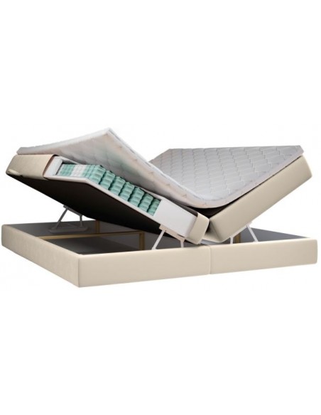 Aggaz kontinentalseng med opbevaring og sengegavl 160 x 200 cm med 7 komfortzoner - Sort/Lys beige