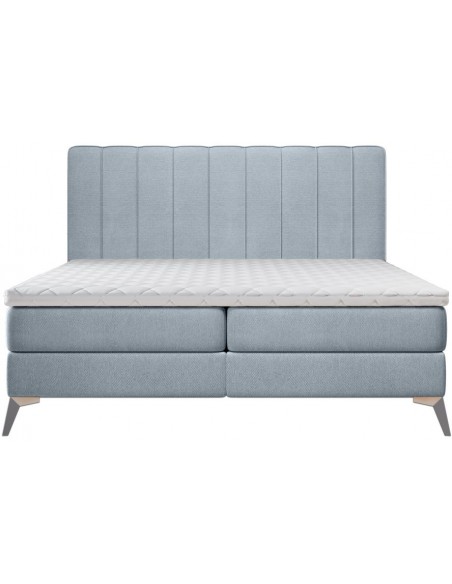 Kontinentalseng med opbevaring og sengegavl, fremstillet i blågrå polyester. Sengen måler 160 x 200 / 211 cm i bredde og dybde og 55 / 120 cm i højden. Madrasserne er med 7 komfortzoner for optimal komfort.