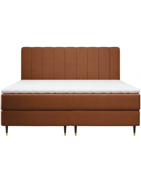 Kontinentalseng med sengegavl, fremstillet i kobberfarvet velour. Sengen måler 160 x 200 / 211 cm i bredde og dybde og 55 / 120 cm i højden. Madrasserne er med 7 komfortzoner for optimal komfort.