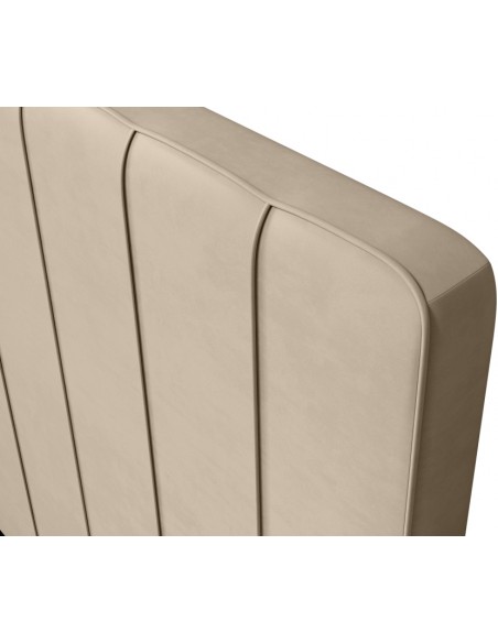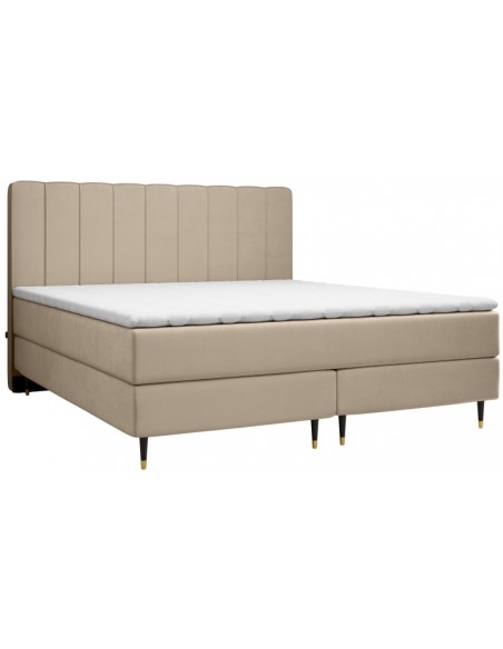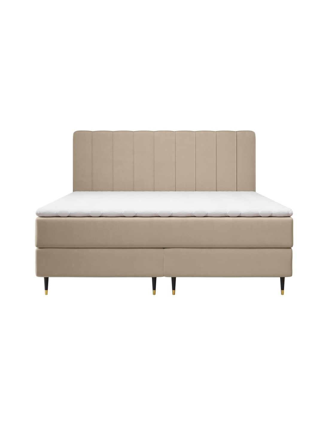 Kontinentalseng med sengegavl, fremstillet i guldbeige velour. Sengen måler 160 x 200 / 211 cm i bredde og dybde og 55 / 120 cm i højden. Madrasserne er med 7 komfortzoner for optimal komfort.