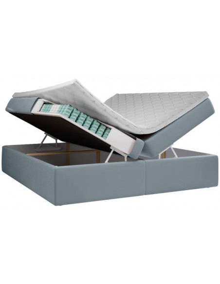 Kontinentalseng med opbevaring, fremstillet i blågrå velour. Sengen måler 160 x 200 cm i bredde og dybde og 64 cm i højden. Madrasserne er med 7 komfortzoner for optimal komfort.