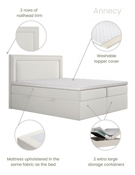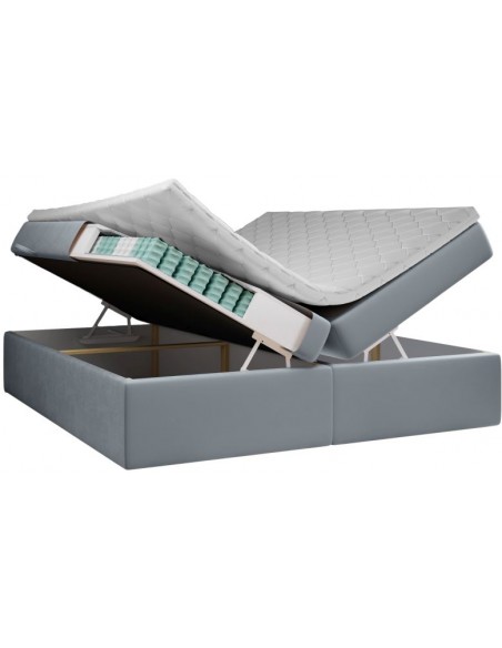 Annecy kontinentalseng med opbevaring og sengegavl 180 x 200 cm med 7 komfortzoner - Blågrå