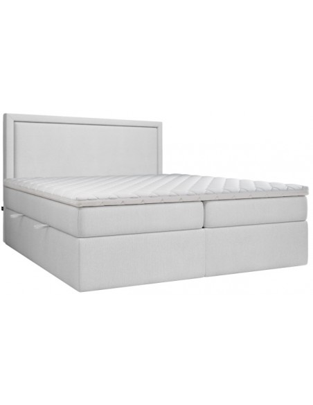 Kontinentalseng med opbevaring og sengegavl, fremstillet i lysegrå polyester. Sengen måler 180 x 200 / 211 cm i bredde og dybde og 64 / 118 cm i højden. Madrasserne er med 7 komfortzoner for optimal komfort.