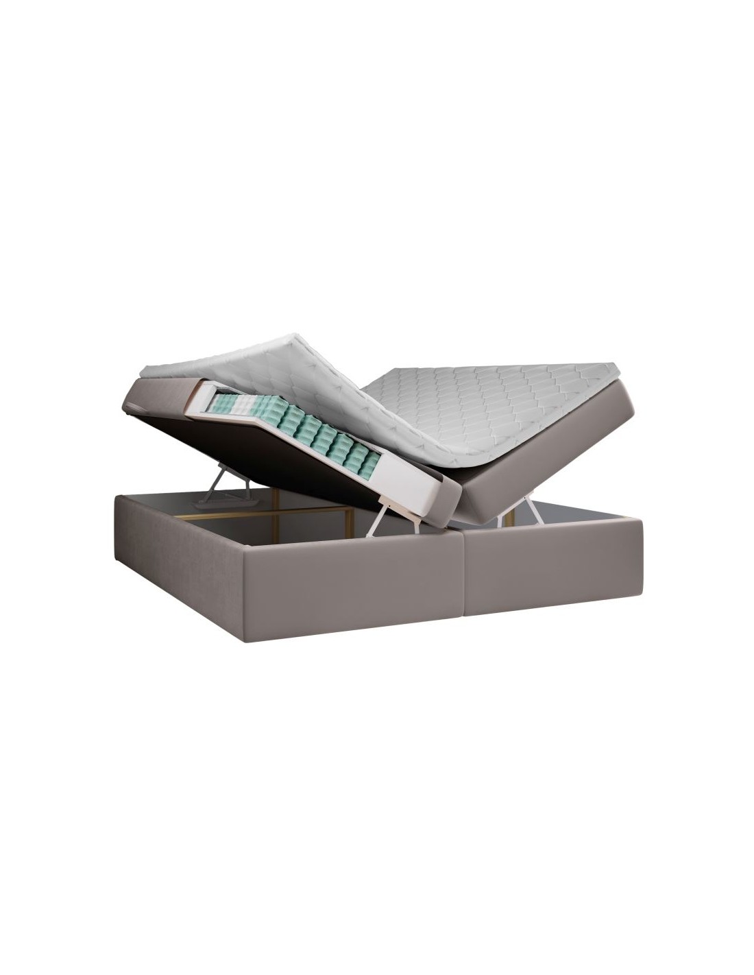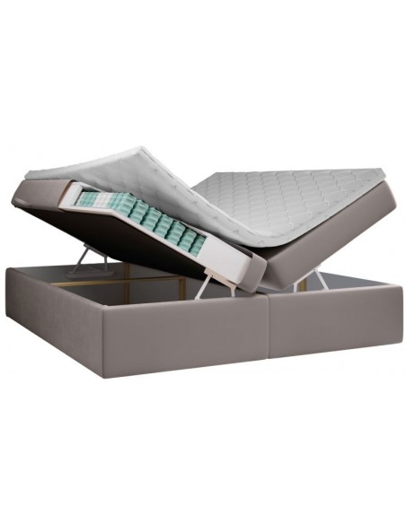 Saint Tropez kontinentalseng med opbevaring og sengegavl 180 x 200 cm med 7 komfortzoner - Mørk beige