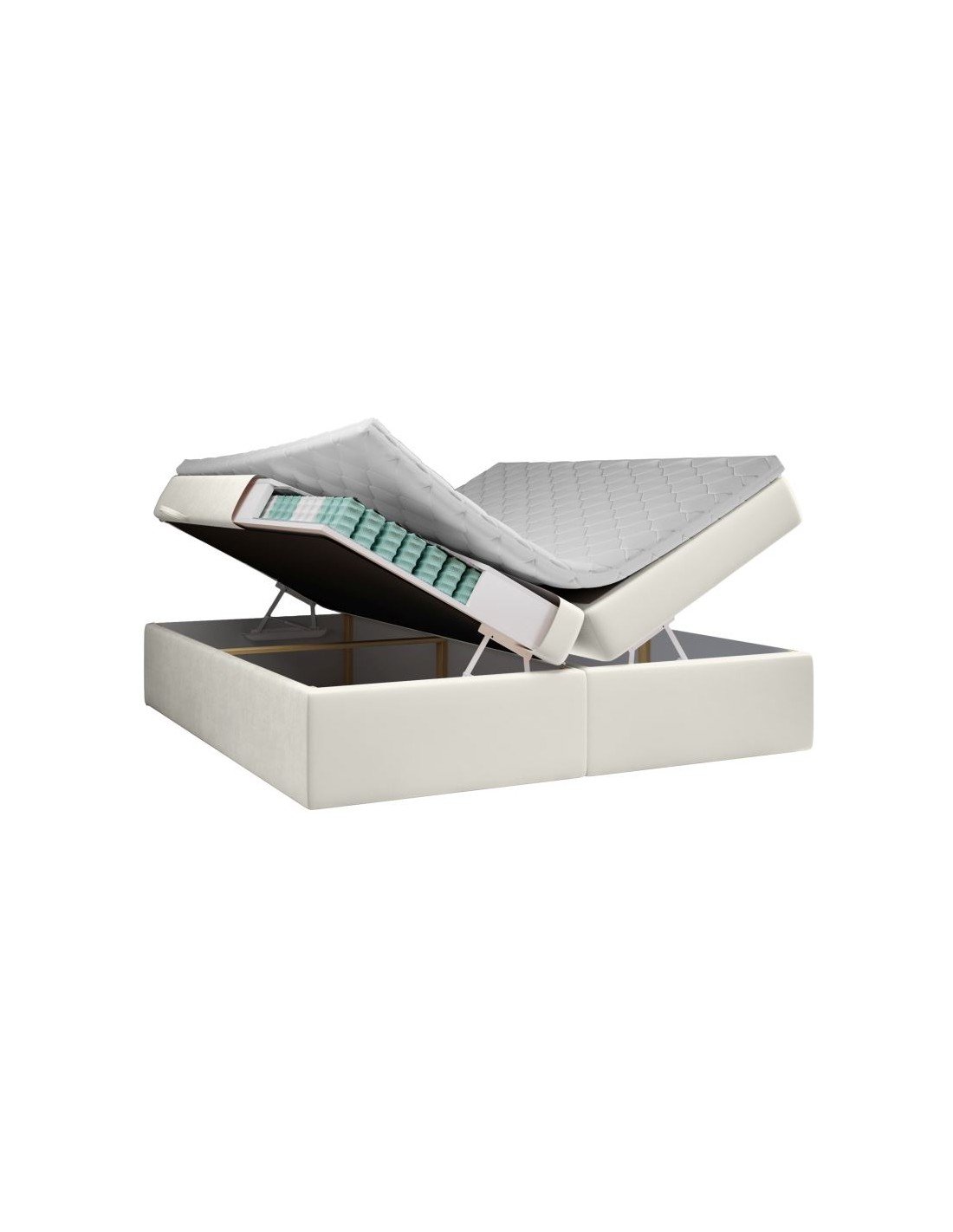 Saint Tropez kontinentalseng med opbevaring og sengegavl 180 x 200 cm med 7 komfortzoner - Cremehvid