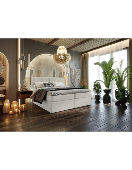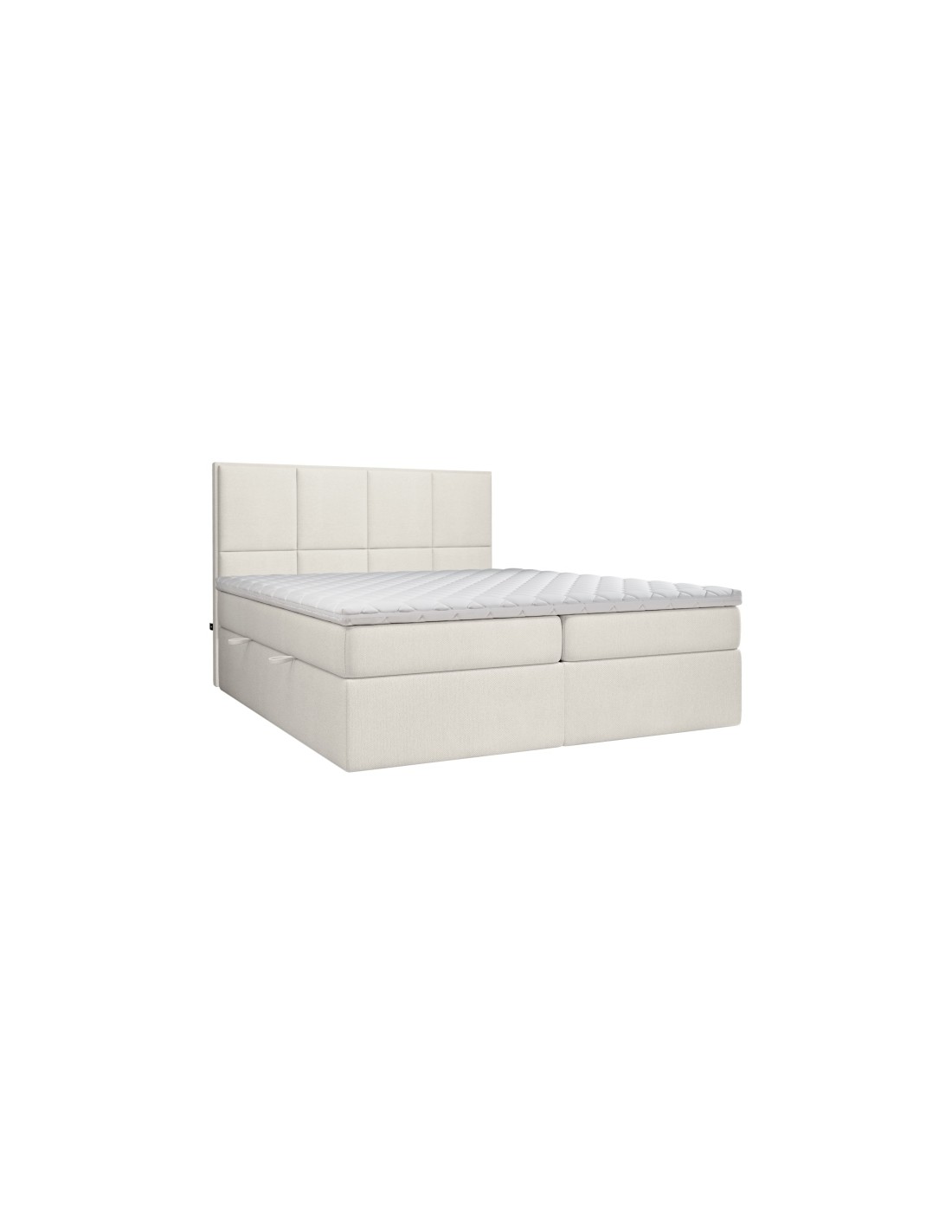 Kontinentalseng med opbevaring og sengegavl, fremstillet i ecru polyester. Sengen måler 180 x 200 / 211 cm i bredde og dybde og 64 / 118 cm i højden. Madrasserne er med 7 komfortzoner for optimal komfort.