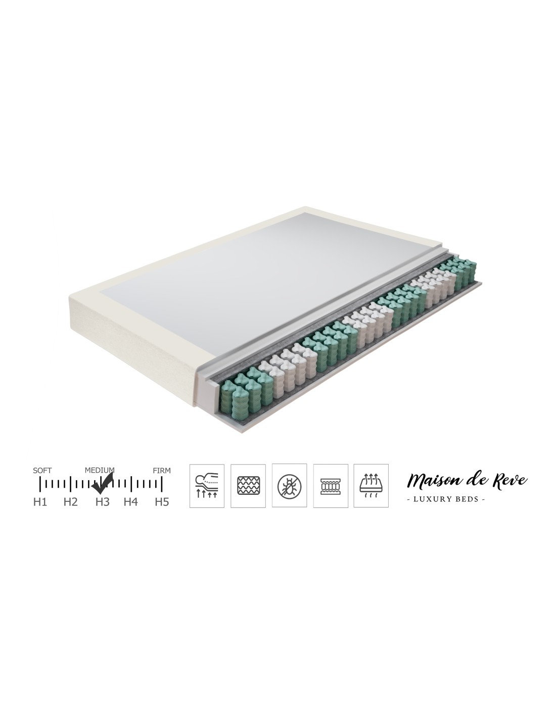 Maison De Reve er en producent af luksuriøse senge, der fremstilles af lækre kvalitetsmaterialer i en kombination af stil, komfort og funktionalitet. Missionen hos Maison De Reve er at tilbyde et bredt sortiment af senge i forskellige designs og komfortniveauer, der reflekterer behovet hos den enkelte bruger. Find det spændende sortiment af senge fra Maison De Reve herunder.