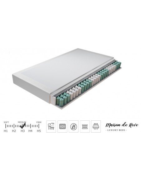• Hårdhed madras: H3 Medium 50 - 90 kg (madrassen fås også som blød H2 version (- 50 kg)